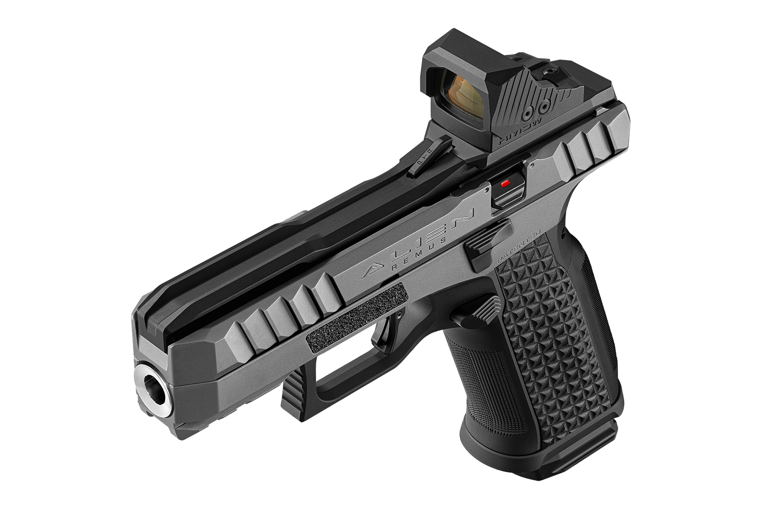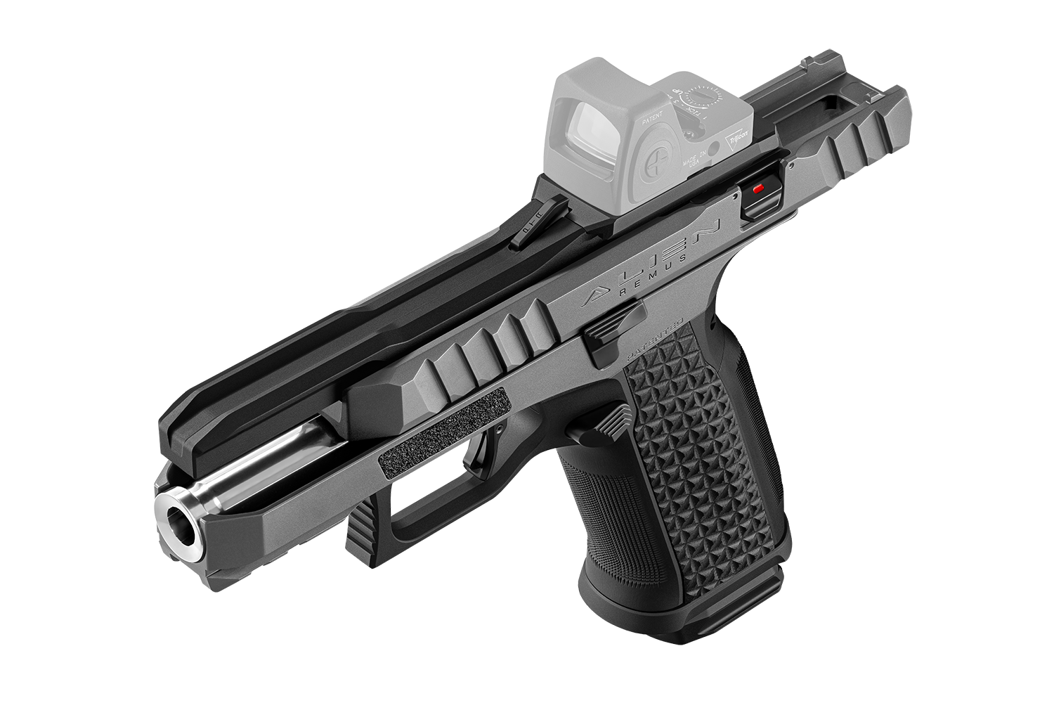 The groundbreaking new Push-To-Rack (PTR) feature gives you the benefits of a non-reciprocating stationary optic during firing while maintaining the ability to smoothly rack the pistol via the optic. Not only is the Alien Remus incredibly drop-safe by design, but a new manual safety now offers additional security and peace of mind.
