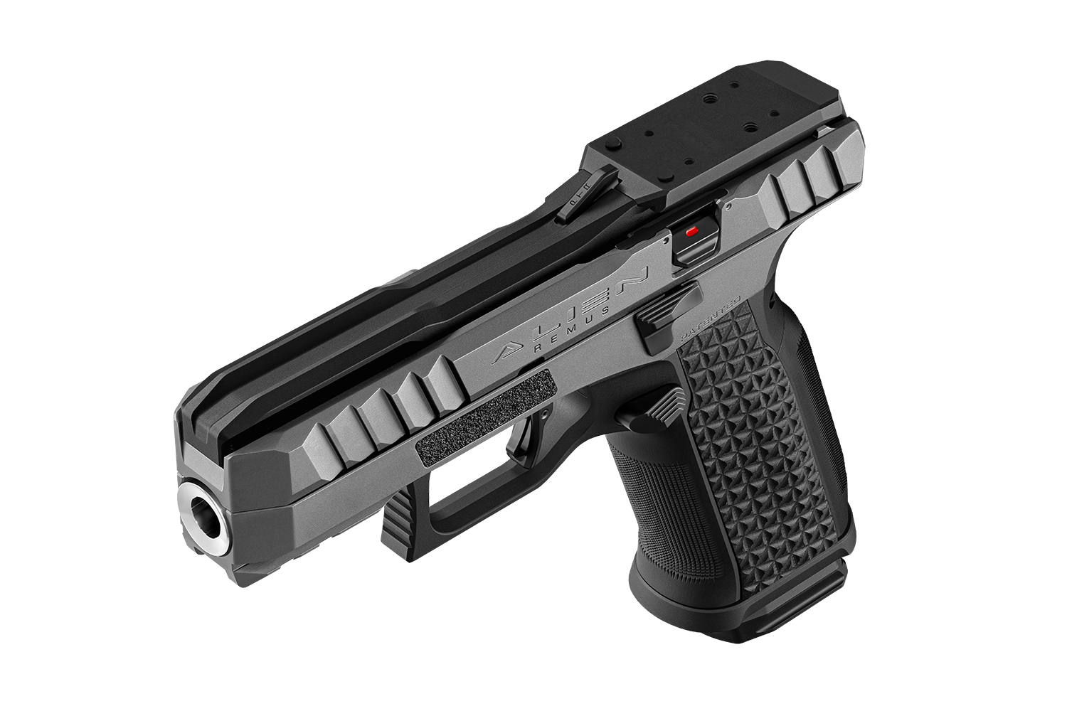 The Remus is compatible with all Alien Creator series grip components including side panels, backstraps, and magwells. The Remus will run all Alien magazines — a new 15-round magazine and 17-round Creator magazine are included.