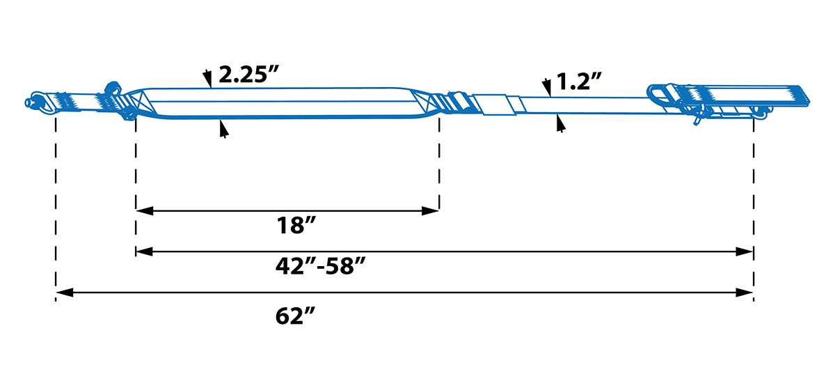 - Adjustable in Length from 42″-58″, Matte Black 1.2″ Width Polyester Webbing with Portion of Sling Padded for Comfort