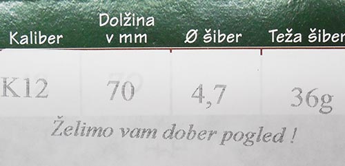 Šiberni naboji diametra 4,7mm, kaliber 12/70