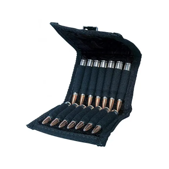 Etui za prenos nabojev dolgocevnega orožja (.223 – 338 Lapua). Etui se lahko pritrdi na pas.Tiho odpiranje.