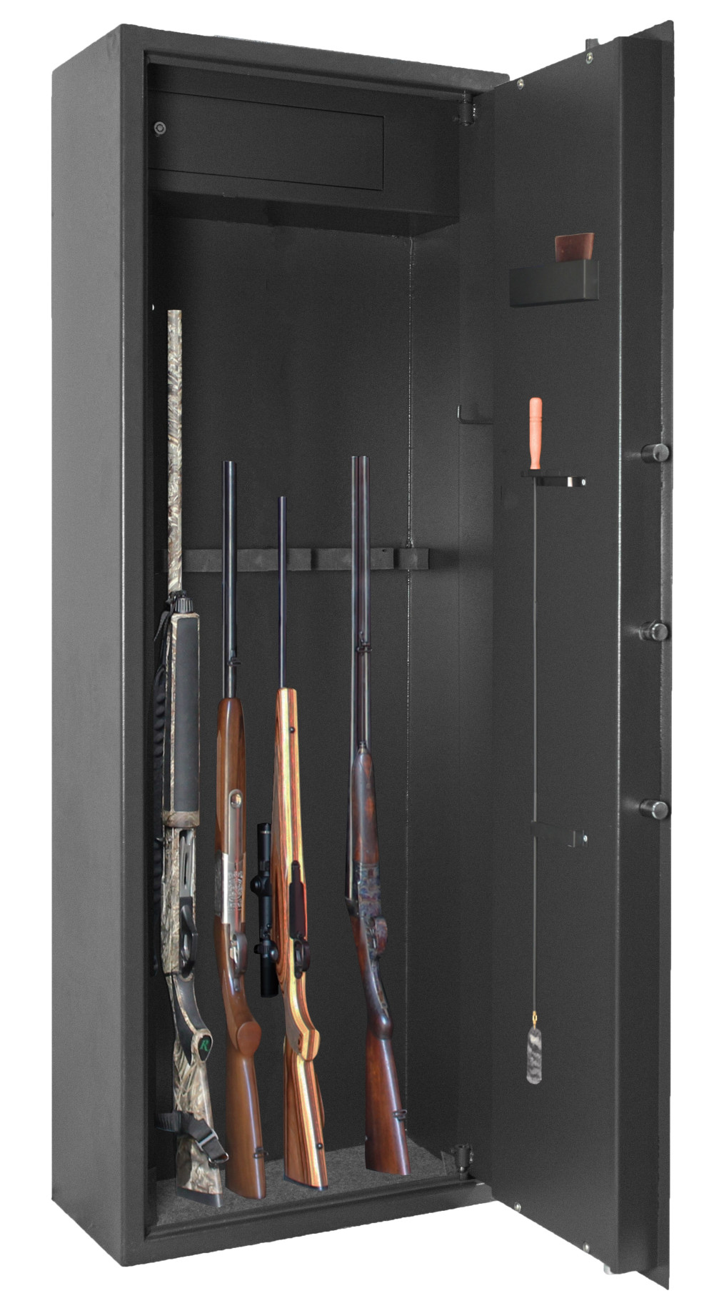 - Gun cleaner rod and document holder on the door panel, For safer storage, mounting holes have been added to the back and bottom of the cabinet, which allows you to easily attach the gun cabinet to the wall or floor,