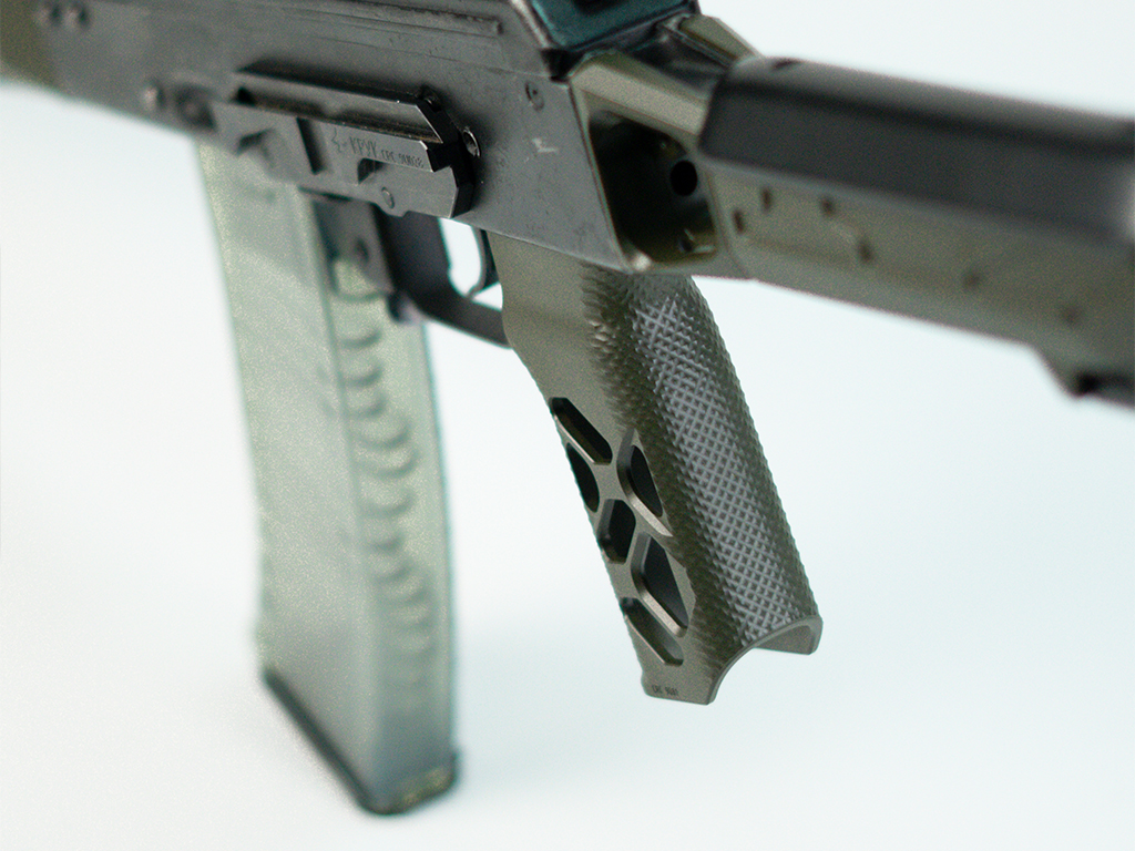 The CRC 9U081 is a lightweight, durable and ergonomic pistol grip for the AK family. Designed and manufactured in a skeleton style, with our signature pattern and openwork textured surface.