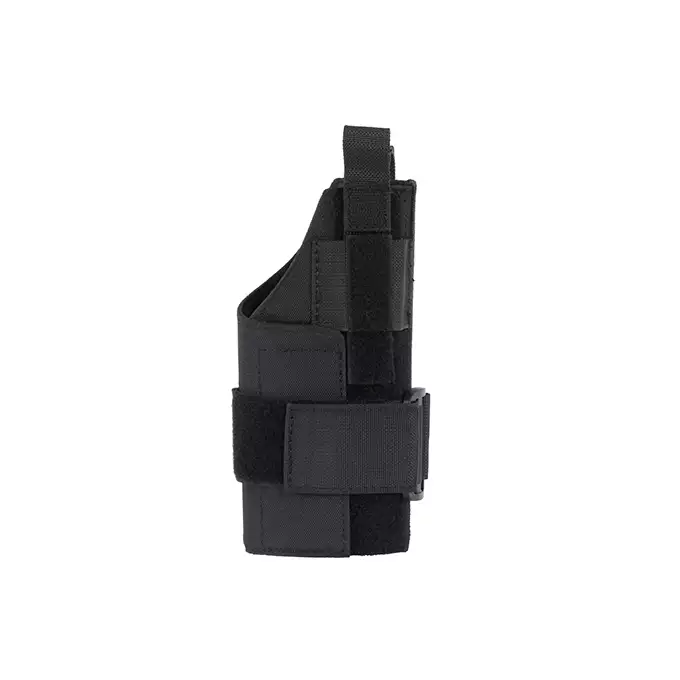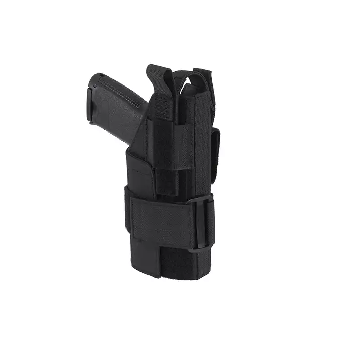 Compact, adjustable belt holster in black. Designed for universal fit with modular retention and easy on/off carry. Durable construction for everyday use.