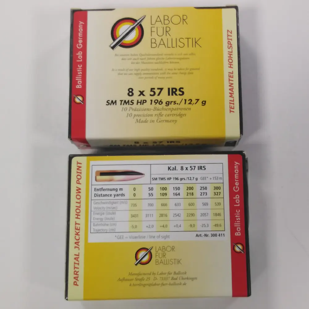 LFB Calibre 8 x 57 IRS LFB SOLID , SM TMS HP – Bullet weight 12.7 g /196 grs.