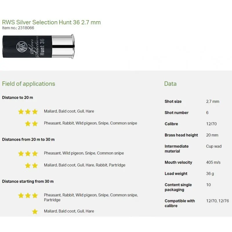 Naboji – RWS Hunt 12/70 2.7mm Silver selection (25×10) – 10 kosov