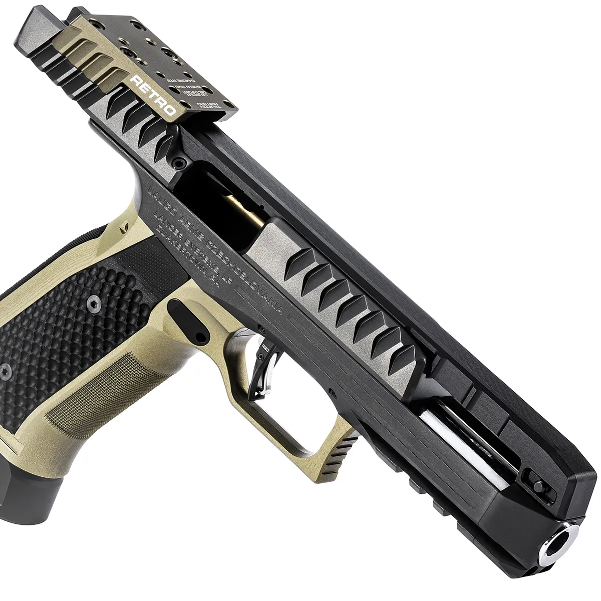 Although this feature eliminates one of the key advantages of the Alien pistol design, the Alien Retro still remains lightyears ahead of the competition thanks to the world’s lowest bore axis, low-reciprocating slide mass, and gas-delayed blowback operation.