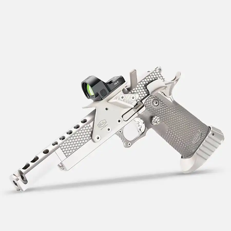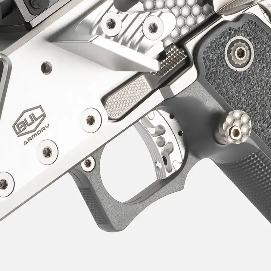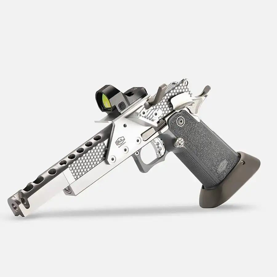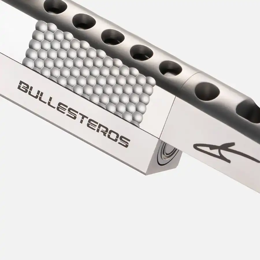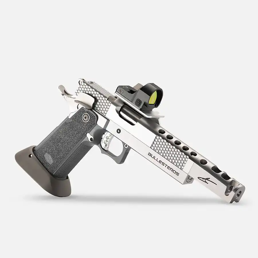 Po enoletnem razvoju s prispevki svetovnega prvaka Jorgeja Ballesterosa smo izdelali novo vrsto odprtega orožja, Bullesteros. Razvoj se je začel z novim ročajem iz nerjavečega jekla, ki je puški dodal težo in zmanjšal odsun na minimum. Ščitnik sprožilca je ergonomsko oblikovan, da omogoča najvišji možni oprijem. Nato ga opremimo z edinstveno enodelno kompenzirano 5,7-palčno hibridno cevjo za hitro in ravno izkušnjo streljanja. Za nameček je Bullesteros opremljen z modularnim sprožilnim sistemom, ki ima zamenljive vložke za sprožilni čevelj, vodilno palico brez orodja, CNC strojno obdelan in vzmetno obremenjen tekmovalni ekstraktor, zaščitena obojestranska varovalka in je ročno izdelan z največjo pozornostjo do podrobnosti.