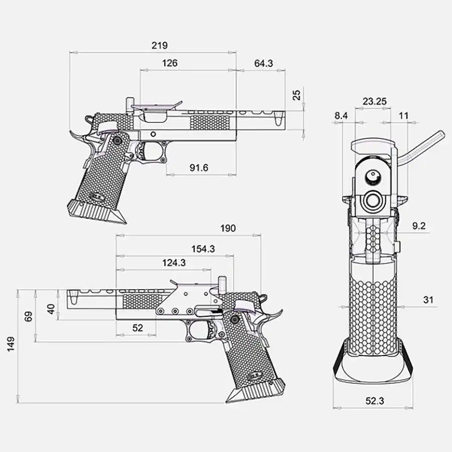 - Ročaj: (FS) iz nerjavečeha jekla modeli pred 2023, modeli 2023- je siv polymer ročai in Volframov magwell.