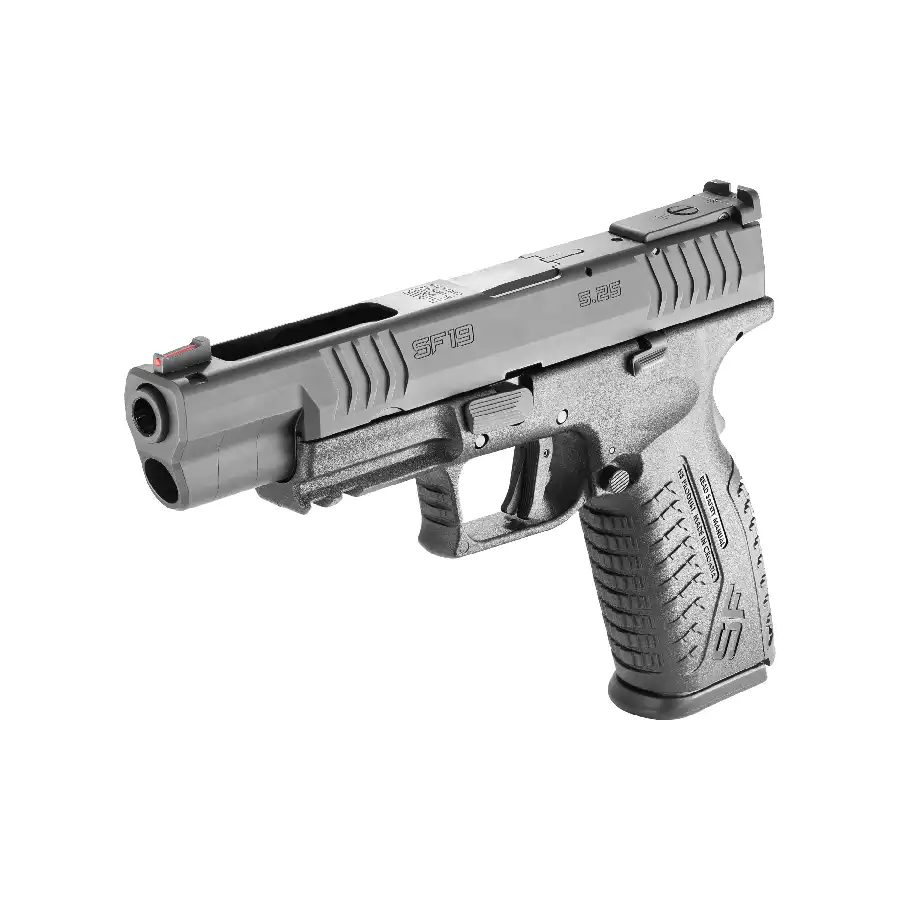 Pištola SF19 5.25 je serijska tekmovalna pištola, ki ima vse, kar potrebujete. Odlikujeta jo podaljšan zaklep in daljša cev, zaradi česar je daljša tudi razdalja med merkoma, ter nastavljiv zadnji merek in optični prednji merek, ki strelcu omogočata, da hitreje nameri tarčo. Daljša cev pomeni tudi večjo izstopno hitrost na ustju cevi, lažji zaklep pa zagotavlja višjo hitrost streljanja in hitrejše izvajanje strelov. Izboljšana oblika sprožilca zagotavlja krajši hod vračanja v začetni položaj (reset) in gladko proženje. Zamenljivi vstavki za zadnji del ročaja pa skupaj z grobimi utori na površini ročaja zagotavljajo izjemen nadzor nad pištolo med hitrim streljanjem. Ostale prednosti vključujejo Picatinny vodila, obojestransko zadrževalo zaklepa in obojestranski gumb za izmet nabojnika, tri povsem samostojna varovala ter dva indikatorja. Pištoli sta priložena nabojnika velike kapacitete (19+1) iz nerjavečega jekla. Pištola SF19 5.25 ima vse, kar potrebujete za doseganje izvrstnih rezultatov na tekmovanjih, pa tudi pri izvajanju taktičnih nalog.