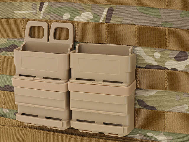 Pouch made of high quality polymer. Pouch has been designed to hold most 5.56 magazines. 2 pouches in the set!