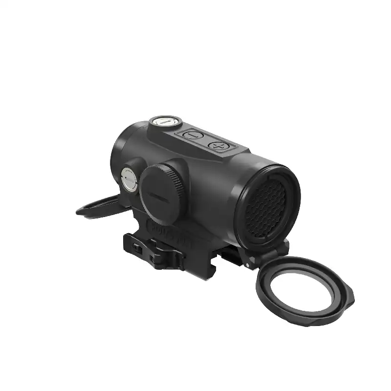 - prihaja s hitro snemljivim nastavkom za Picatinny, preklopnimi pokrovi za objektiv in filtrom Killflash
