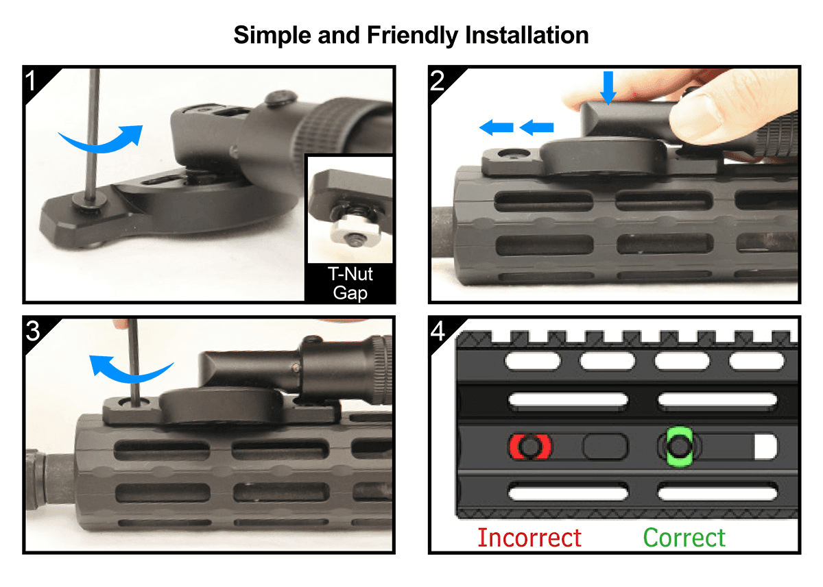 • Directly Attaches to M-LOK® Handguards at the 3 and 9 O’clock Positions