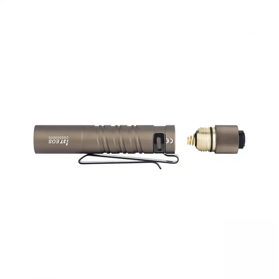 I3T EOS je tanka svetilka s stikalom na repu, ki jo napaja ena baterija AAA z največjo močjo 180 lumnov. Opremljen je z odlično LED diodo v kombinaciji z optično lečo TIR, ki proizvaja mehak in uravnotežen žarek. Opremljen je tudi z dvosmerno žepno sponko za več možnosti nošenja, kot je trak za žep ali nahrbtnik. I3T je neverjetno priročna izkušnja osvetlitve, ki jo lahko vzamete s seboj povsod.