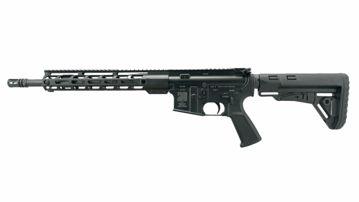 Both upper and lower receivers are manufactured from forged 7075-T6 aluminum, balancing structural rigidity with reduced weight. A low-profile gas block system and standard AR trigger group maintain compatibility with aftermarket components, supporting user customization and system tuning.